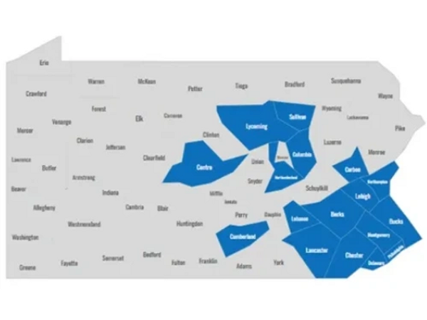 In FY25, The Friends Collaborative's EITC scholarship recipients resided in 17 counties across Pennsylvania. This graph highlights the strong pull of a Quaker education across the State.